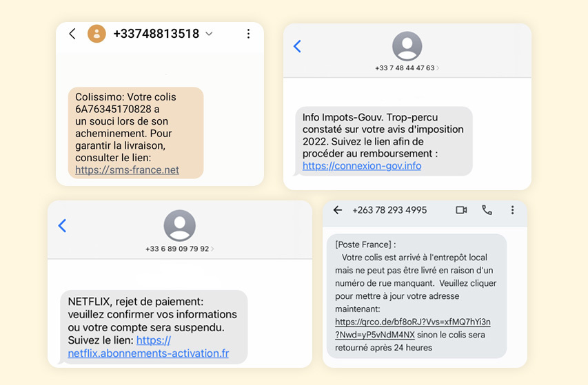 Exemples de SMS frauduleux
