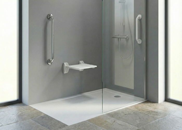 Les modèles de douche adaptés aux personnes à mobilité réduite sont pensés pour assurer l’accessibilité de tous. Afin de limiter le risque de chute et de garantir une utilisation sereine, la cabine de douche est équipée de plusieurs accessoires de sécurité.